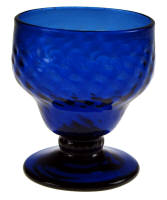 A rare mid 18th-century blue quilted bonnet glass of ogee form on knopped circular foot