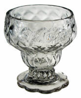A mid 18th-century quilted bonnet glass of ogee form on knopped lobed foot