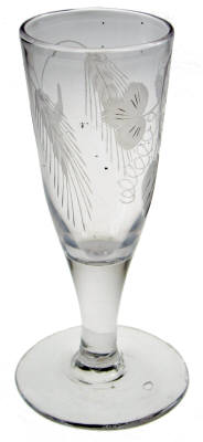 A late Georgian dwarf ale glass, the bowl engraved with hops and barley
