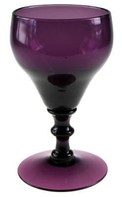 A 19th-century amethyst glass "rummer", the ogee bowl on a knopped stem and plain circular foot
