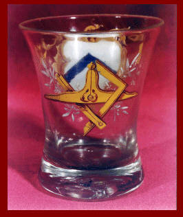 A rare Beilby of Newcastle-upon-Tyne Masonic firing glass painted in enamels withe masonic symbols and on the reverse with the armorial bearings of the Grand Lodge of England, circa 1770