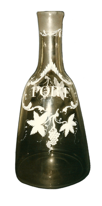 A rare Beilby of Newcastle-upon-Tyne mallet-form decanter, with scroll cartouche named "PORT" and fruiting vine, in white enamelling, circa 1770