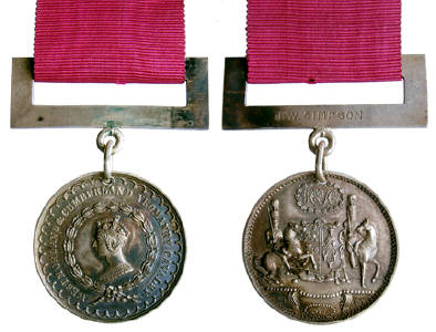 Westmorland & Cumberland Yeomanry Cavalry, Merit Award Medal issued each year at the main annual camp, this for 1872, named to J.W. Simpson.