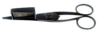 A pair of early 19th-century steel snuffers , of narrow form to fit in the stem slot of a chamber candlestick