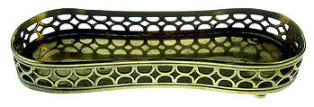 A late Georgian brass snuffers tray of waisted form, with plain base and pierced gallery