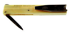 A George IV quill cutting machine, ivory, nickel and steel, marked "FISHER 188 STRAND, 87mm long