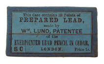 A paper case of Lund's Leads, each lead housed within a fine glass tube within