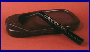 A Chinese 19th-century carved hardstone ink-stone and a 19th-century stick of ink