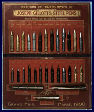 A salesman's folding sample case of Gillott's steel pens, 1900. Similar sample wallets with many pages unfolding in concertina fashion are also found