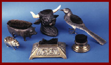 A group of cast metal pen-wiping brushes for the desk, some of Austrian cold-painted bronze, others of brass