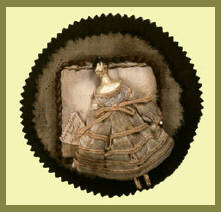 A rare late Georgian home-made pen-wiper in the form of a wooden peg doll of the period, reclining on a bed, her fan with the hand-written request, "Pray, may I wipe your pen"
