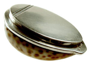 A George III silver-mounted cowrie-shell snuffbox, London, 1810, makers Phipps and Robinson, 69mm long