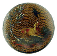 A papier mâché snuffbox, the push-on cover finely painted witha gundog raising a pheasant, circa 1820, 60mm diameter