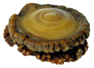 A 19th-century snuffbox formed of the two skull attachments of a stag's antlers, 60mm diameter