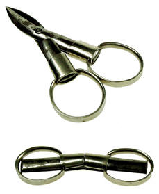 A pair of silver-mounted steel scissors, impressed "PERRY'S PATENT / BRIGHTON", one blade with integral nail file, circa 1830, 67mm, (closed)