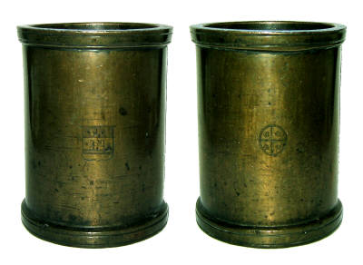 Two views of a rare Elizabeth I bronze quart measure brought into my shop in Carlisle in 1974. It was part of one of the sets issued to all the county towns in England in 1601
