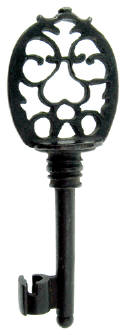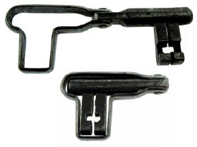 Two views of an 18th-century iron key, folding for the pocket, 50mm, (closed)